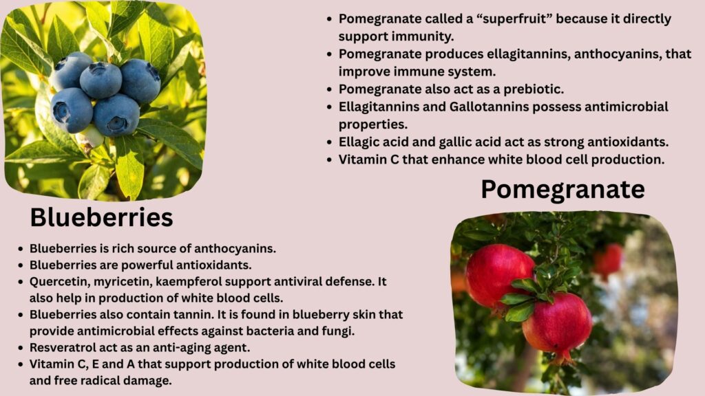 blueberries are powerful antioxidants that protect immune cells from oxidative stress. It also have antiviral and anti-inflammatory effects.