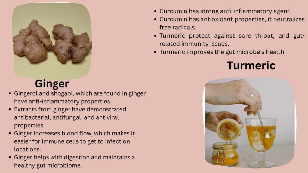 Gingerol and shogaol, which are found in ginger, have anti-inflammatory properties. By doing this, immune system is not overloaded and work more effectively.