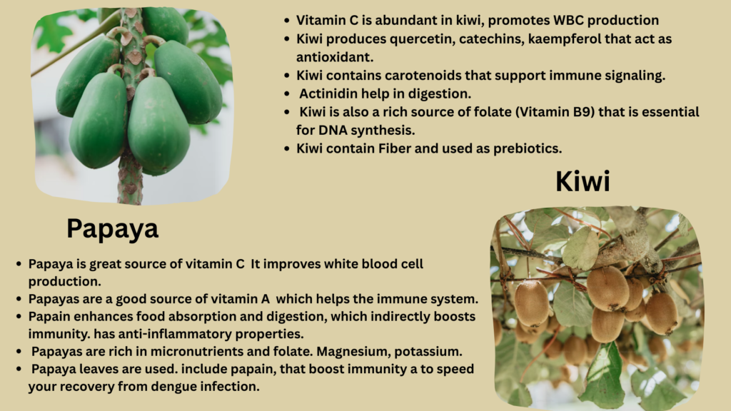 Papaya contain flavonoids and carotenoids function as antioxidants, shielding immune cells from harm caused by free radicals.