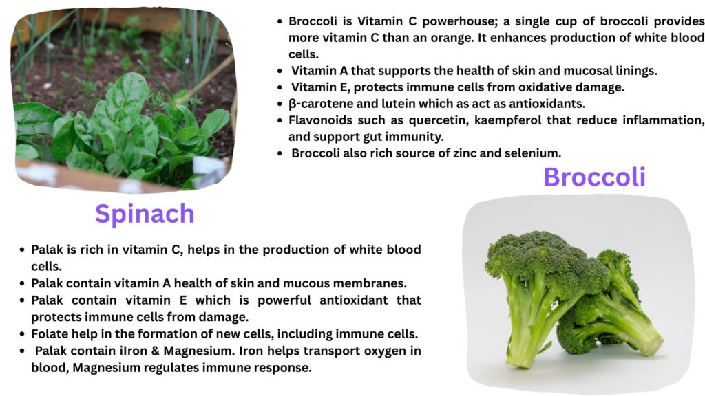 Palak contain Folate (Vitamin B9) which is crucial for the formation of new cells, including immune cells.