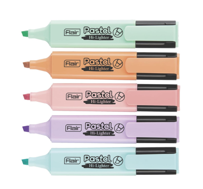 FLAIR Pastel 5 Shades Hi-lighter Pouch Pack | Flexible Line Width | Quick Drying & Smudge Proof Pastel Ink | Non-Toxic Ink
